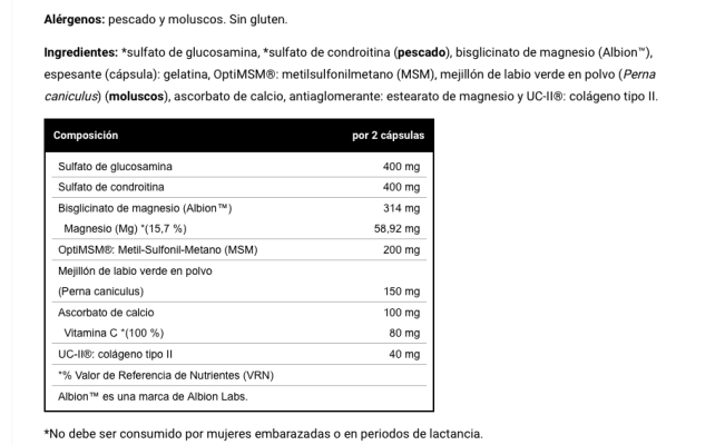 Contiene colágeno hidrolizado UC-II de Lonza, que estimula la producción de colágeno por los condrocitos. Además, incluye glucosamina, condroitina, OptiMSM, magnesio, vitamina C y otros ingredientes de calidad. ArtiFlex contribuye a recuperar el cartílago dañado, reducir el dolor, y prevenir lesiones articulares.