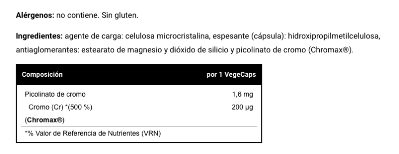 Chromium Picolinate es uno de los productos más potentes del mercado debido a su alto contenido de cromo de máxima calidad. Ayuda a estabilizar el metabolismo de los macronutrientes, aumentar la sensación de saciedad y potenciar la pérdida de peso.
