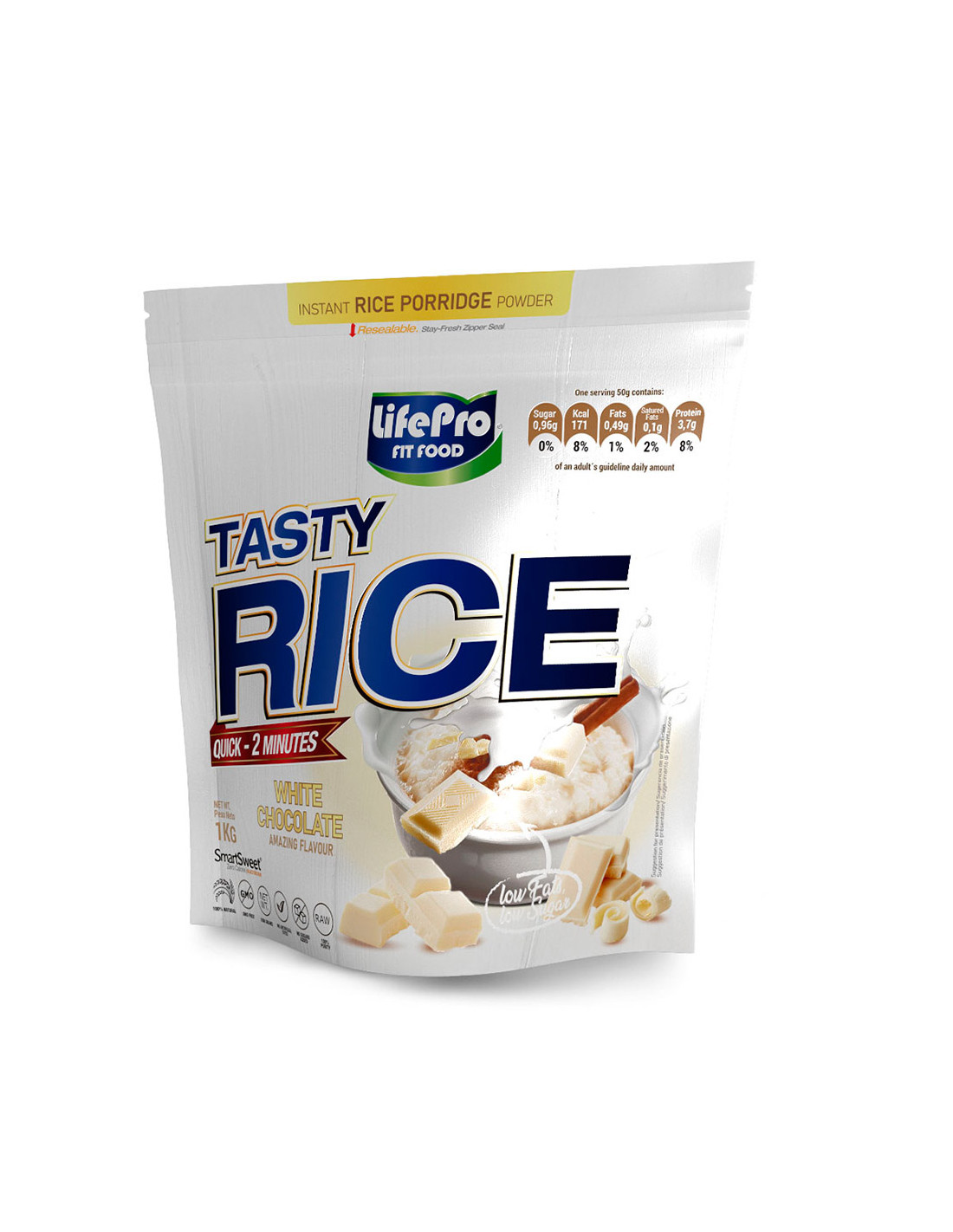 Tasty Rice de Life Pro es un complemento elaborado a base de harina de arroz pregelatinizada, que mantienen todas las propiedades y nutrientes del arroz, que permite preparar distintas cremas o recetas de forma cómoda y rápida.